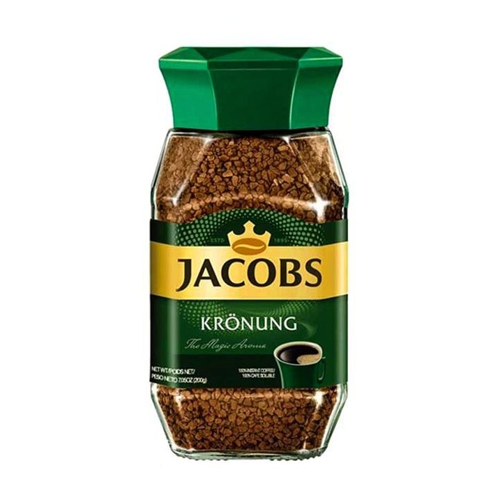 JACOBS از ترکیب دانه های عربیکا و ربوستا بدست می آید و به گونه ای فیلتر شده که پس از حل شدن در آب ئارای باقیمانده ای در انتهای فنجان شما نخواهد بود و به صورت کامل در آب حل می شود . این محصول با دسته بندی های 50 و 100و 200 گرم در کشور هلند تولید و در روسیه و دیگر کشور های اروپایی توزیع می شود . شما با نوشیدن این محصول متوجه خواهید شد که واقعی ترین طعم قهوه دم کرده نصیب شما خواهد شد .
